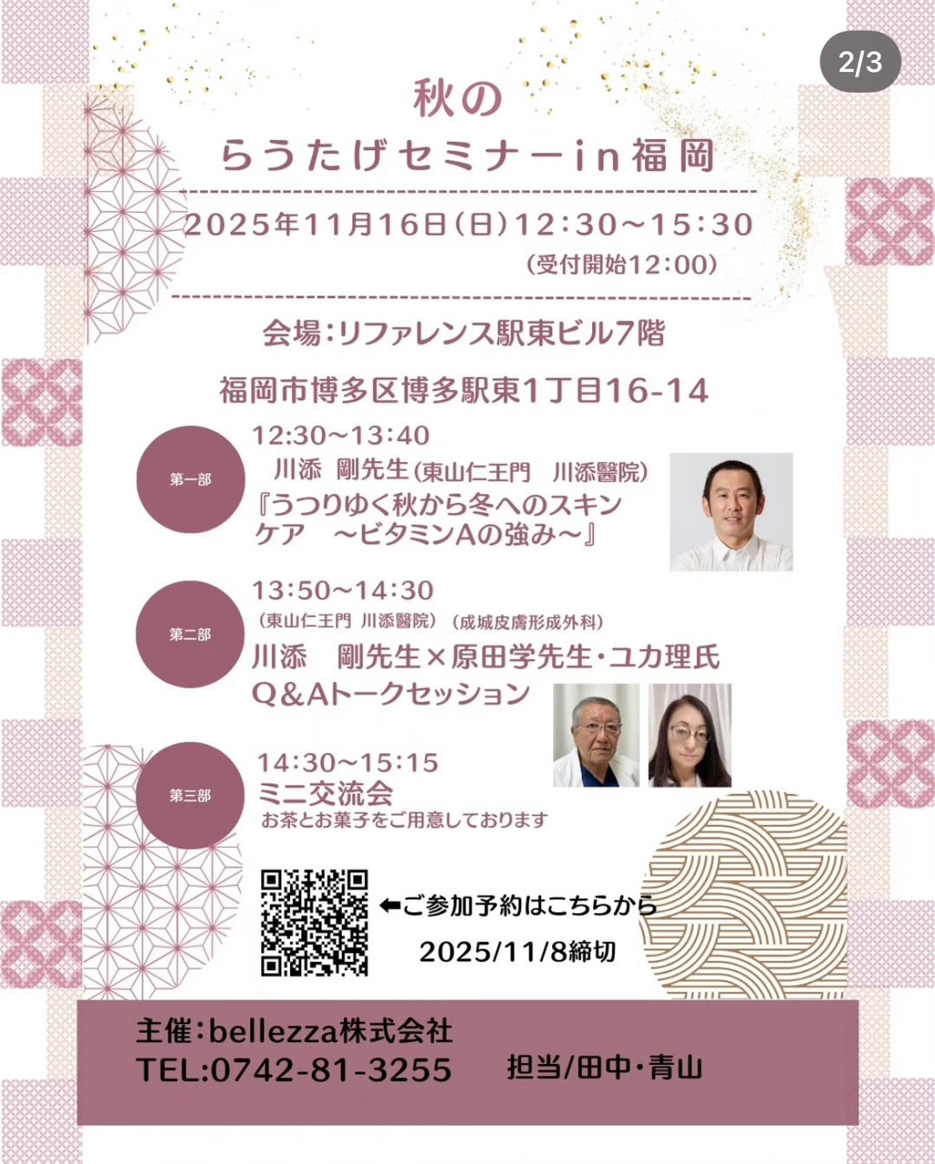 #らうたげ #らうたげセミナー #rautage #福岡市 #こすらないスキンケア #美肌ケア #ドクターズコスメ #美肌レシピ #美容好き #セミナー #ビタミン #βカロテン #エイジングケア #ニキビケア #トラネキサム酸