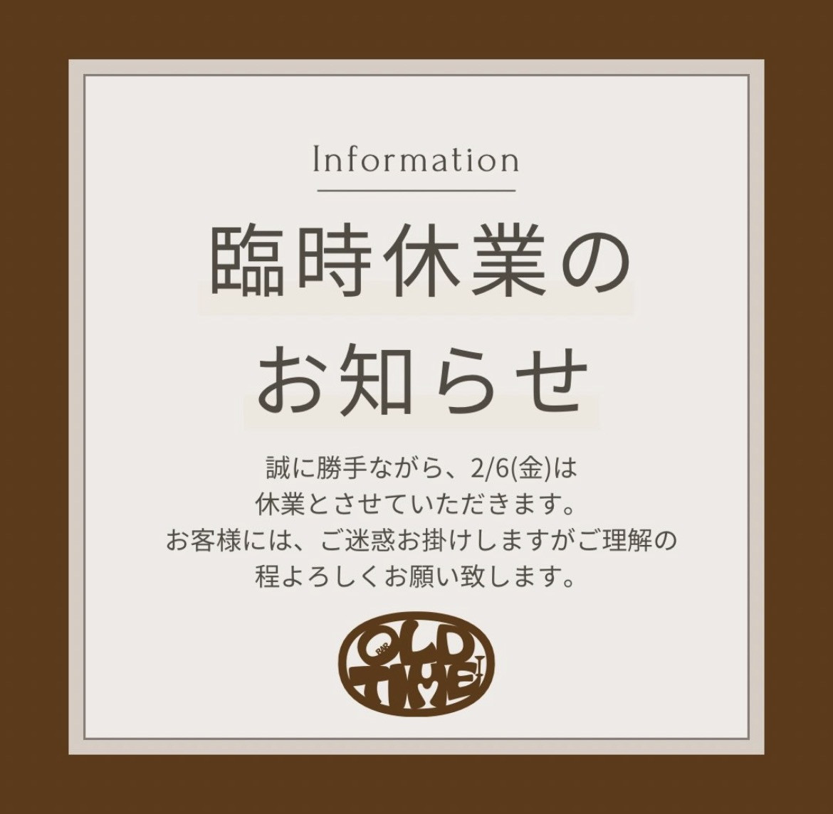 本日2/6(金)は誠に勝手ながら臨時休業とさせて頂きます。